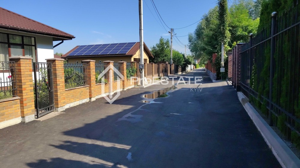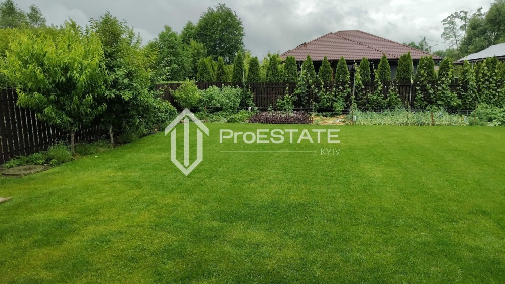 Ділянка 8 соток, правильної форми, обгороджений парканом з цегли і кування, залита вимощення; покладена тротуарна плитка Профіт h-60, виробництва «Золотий мандарин»; ворота і хвіртка з виходами під автоматику; встановлений септик з трьома рукавами дренажного поля; вирощений неперевершений газон; є місце попрацювати на власному городі; висаджені молоді дерева (яблуні, вишні, персики, нектарин, черешні, груші, сливи, айва); ягідні кущі (смородина, жимолость, лохина, парічка, аґрус, ожина, малина); виноград, біля 50 кущів роз, багато полуниці. Навіс на два автомобілі. Є сарайчик для зберігання садового інвентаря, зона барбекю.