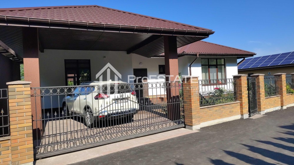 Котедж сучасного планування: передпокій, котельна - пральня, простора кухня-вітальня з виходом на терасу 38м2 (оздоблена клінкерною плиткою Asti broun klinker), санвузол, гардеробна (є можливість зробити додатковий санвузол), три просторі спальні. Підігрів підлоги і зовнішніх стін по всьому будинку, датчики регулювання температури в кожній кімнаті, є шурфи під встановлення теплового насоса. Енергозберігаючі, вітражні вікна Rehau. Якісні вхідні двері. Стіни пофарбовані якісною фарбою. Підлога, кухня та санвузлол оздоблені якісною плиткою. Встановлена сучасна кухня. Централізоване водопостачання (Юрська вода, 228 метрів), також є своя свердловина на ділянці.