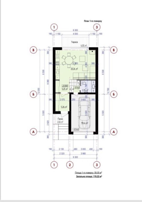 Гарне планування з великими санвузлами, трьома кімнатами, просторим гаражем.