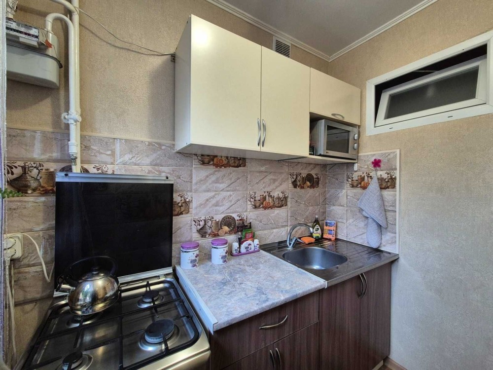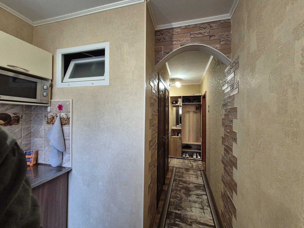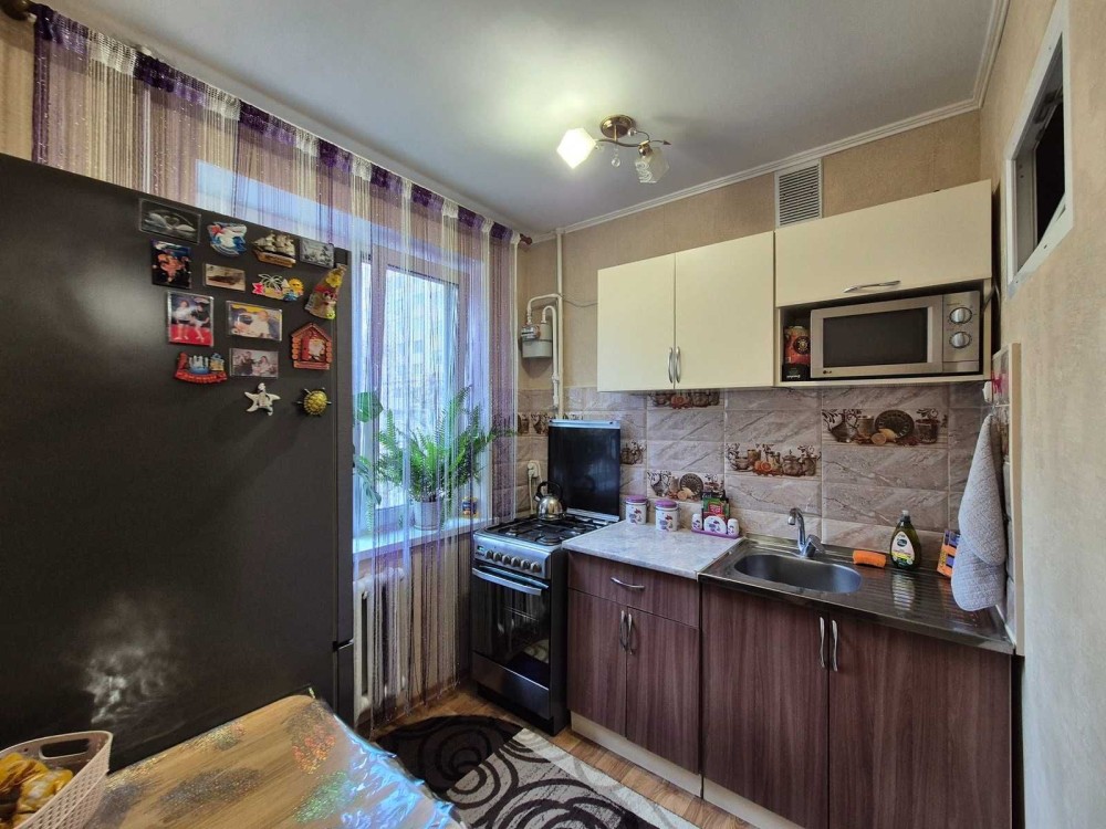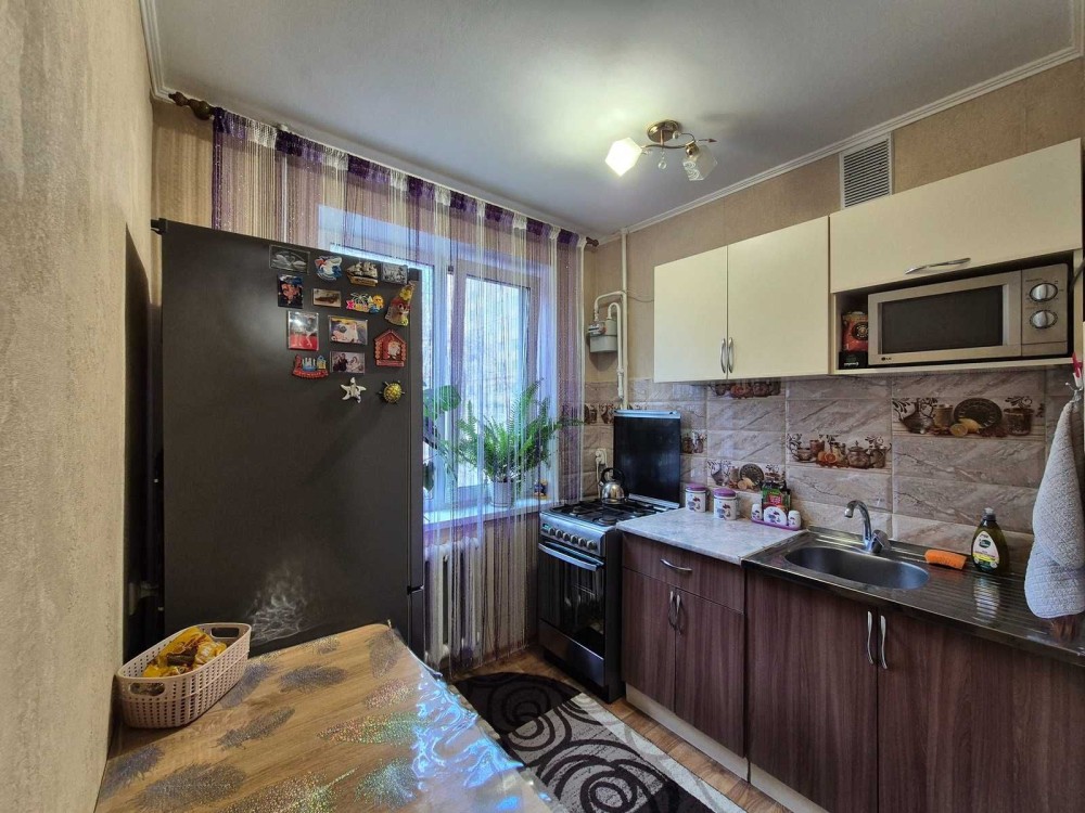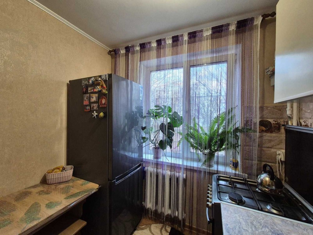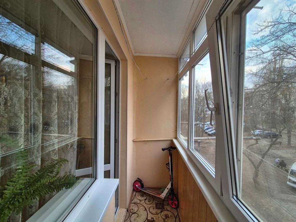 У квартирі залишається вбудована кухня. Балкон засклений металопластиком, що додає комфорту у будь-яку пору року.