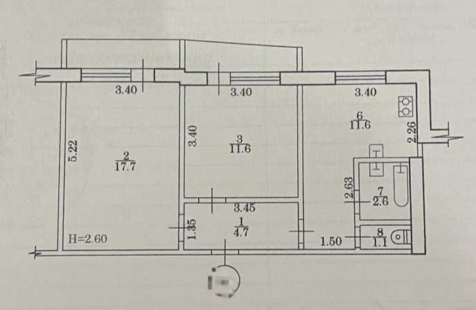 • Площадь кухни 8 м2