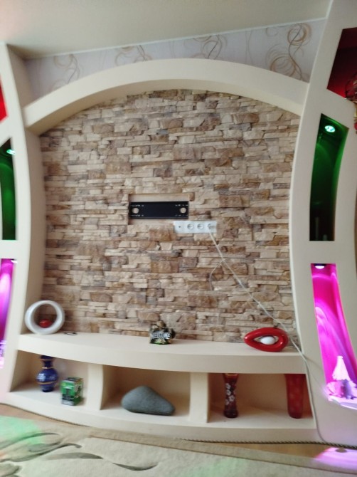 Зал - натяжные потолки, горка с подсветкой