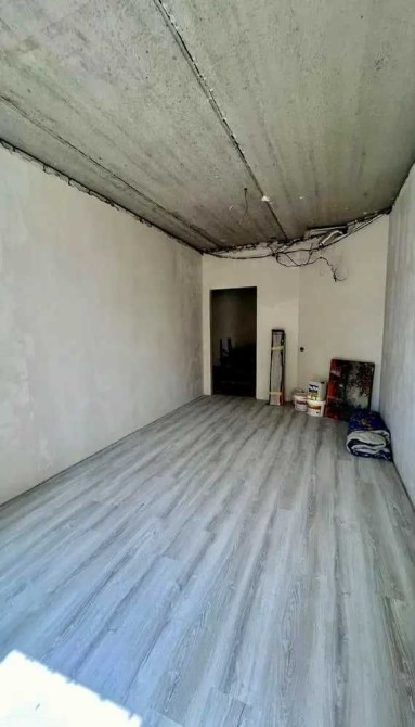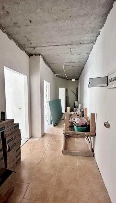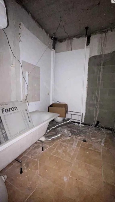 — на полу плитка, сделана стяжка стен;