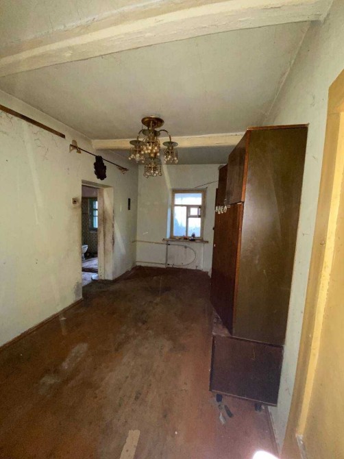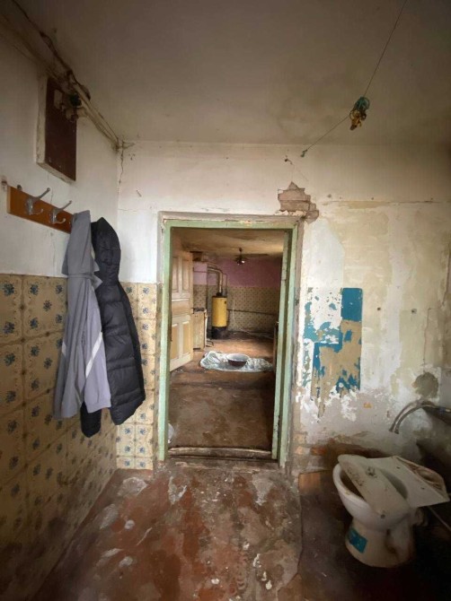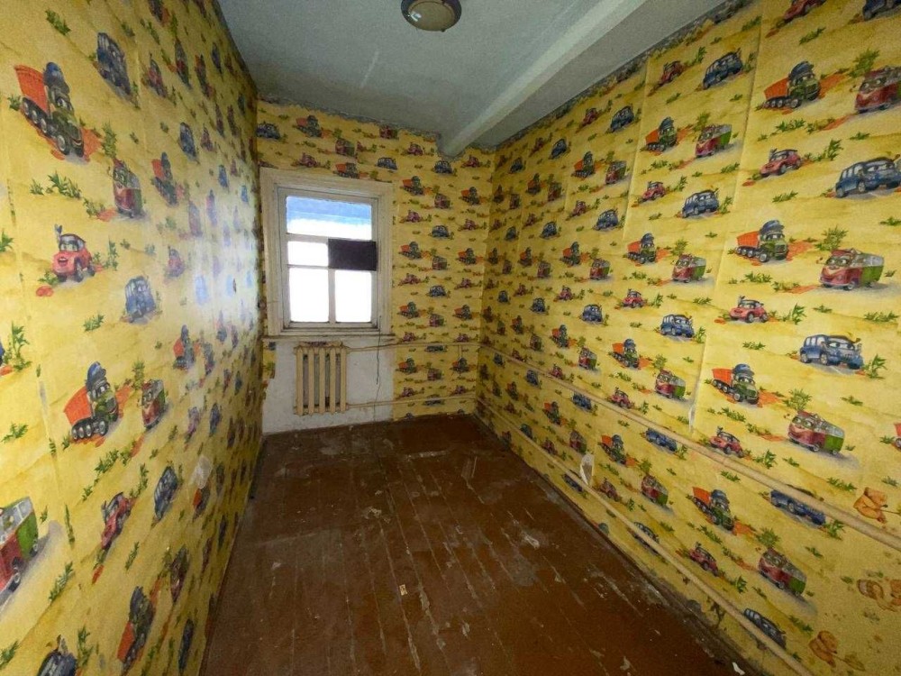 Планировка включает три комнаты, кухню, унитаз установлен, но помещение требует доработки до полноценного санузла. Установлен котёл старого образца.