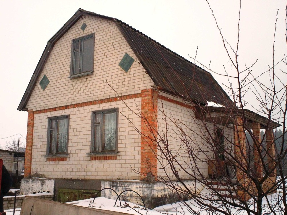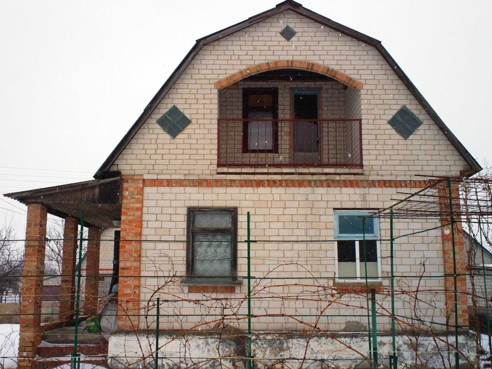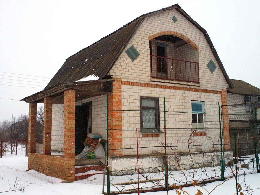 Дом 2-эт., 6,5 х 7,5, белый кирпич, 23/18/9 кв.м, железобетонные перекрытия, полуподвальное помещение на блоках, печка, скважина, заезд для машины 4х6 м, чернозём, 6 соток. Фруктовые деревья, кустарники, виноград. Пригоден для проживания зимой. Рядом речка Золотоношка, озеро, лес. На крайнем фото вид с балкона. Цена 15 тысяч долларов.