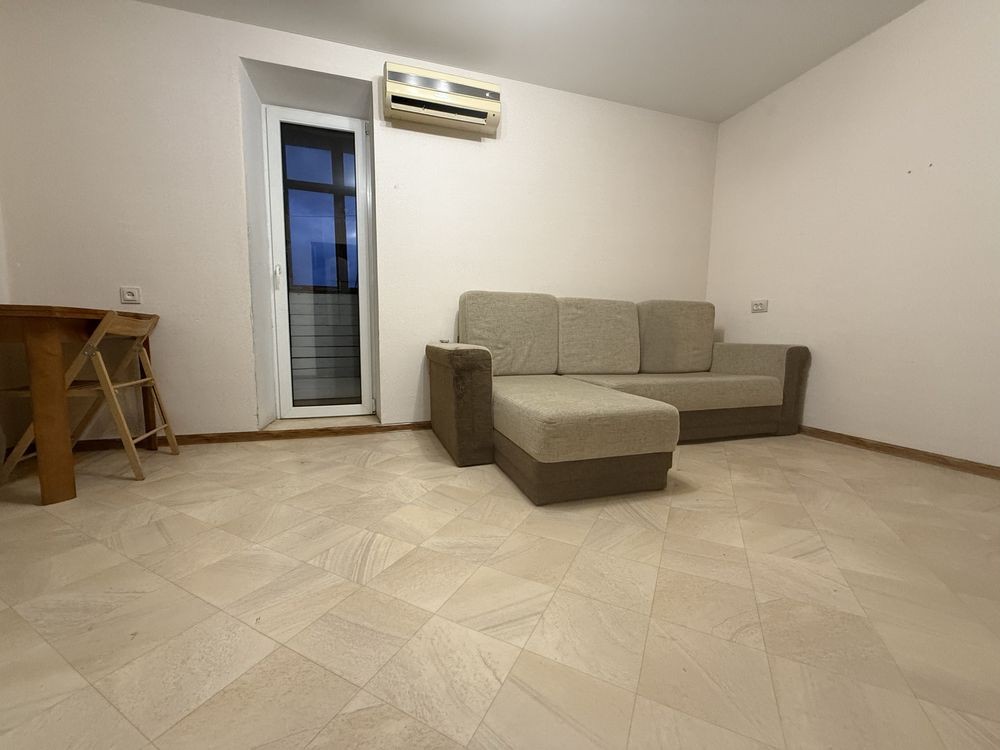 В первой комнате есть диван, кондиционер и выход на большой и просторный балкон с хорошим видом.