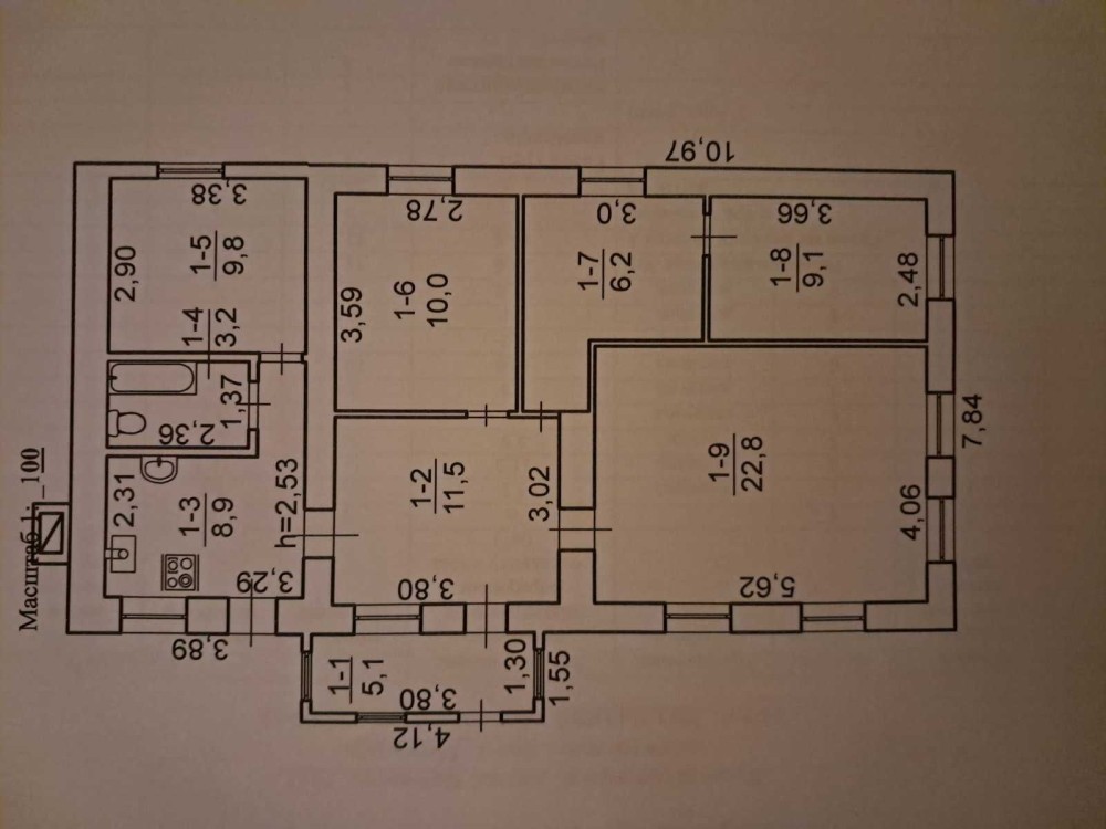 У будинку чотири житлових кімнати, кухня, санвузол та коридор.