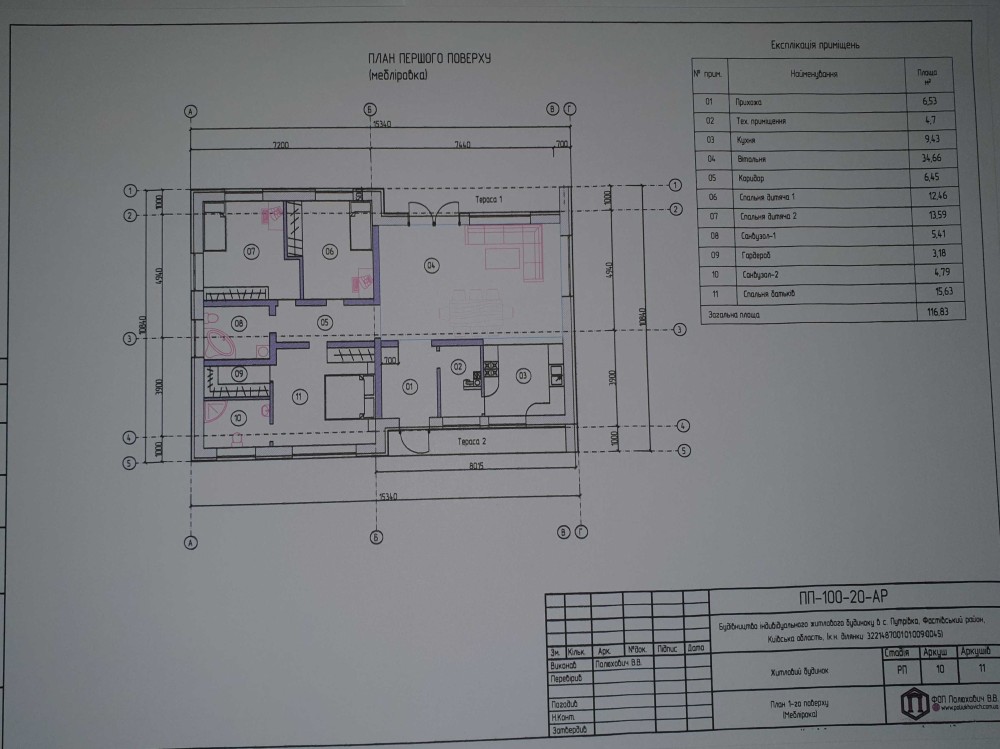 Загальна площа - 126 м2 (житлова – 77 м2) + відкрита терраса 29 м2.