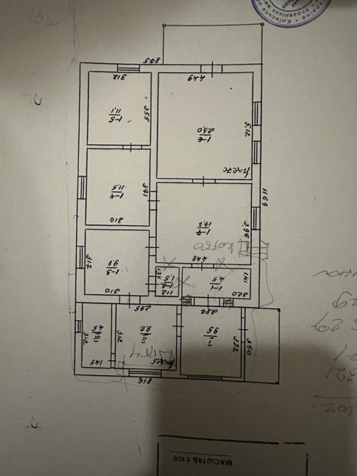 В будинку 2 поверхи на першому поверсі 7 кімнат на другому поверсі 2 кімнати