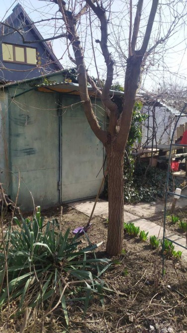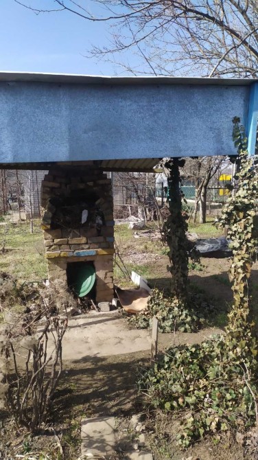 Дача без будинка, але є велика металева будка з холодильником, кроватю, столами, полками. Поряд зона для відпочинку (стіл з лавками під навісом), пічь-мангал, є туалет. Багато садового інвентарю. Проведена питна вода і електроенергія (лічильники). Поряд ставок, можна купатись.