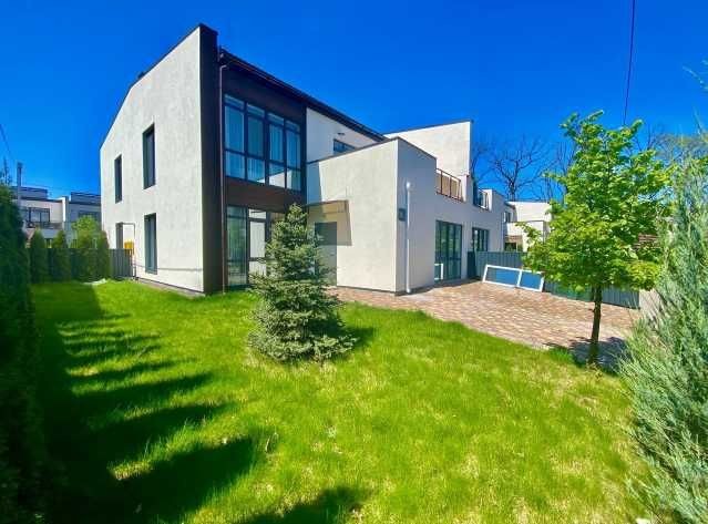 Будинок виконаний у сучасному мінімалістичному стилі з лаконічним фасадом та великими вікнами, що наповнюють приміщення природним світлом. Просторе планування дозволяє облаштувати комфортну кухню-вітальню з виходом на терасу, а також затишні спальні на другому поверсі.