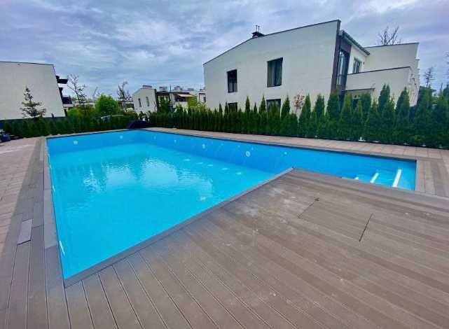 Особливу атмосферу створює прибудинкова територія: велика тераса з якісного покриття, басейн, місце для шезлонгів та озеленення по периметру, що забезпечує приватність і затишок. Це простір, де кожен день відчувається як відпочинок за містом.
