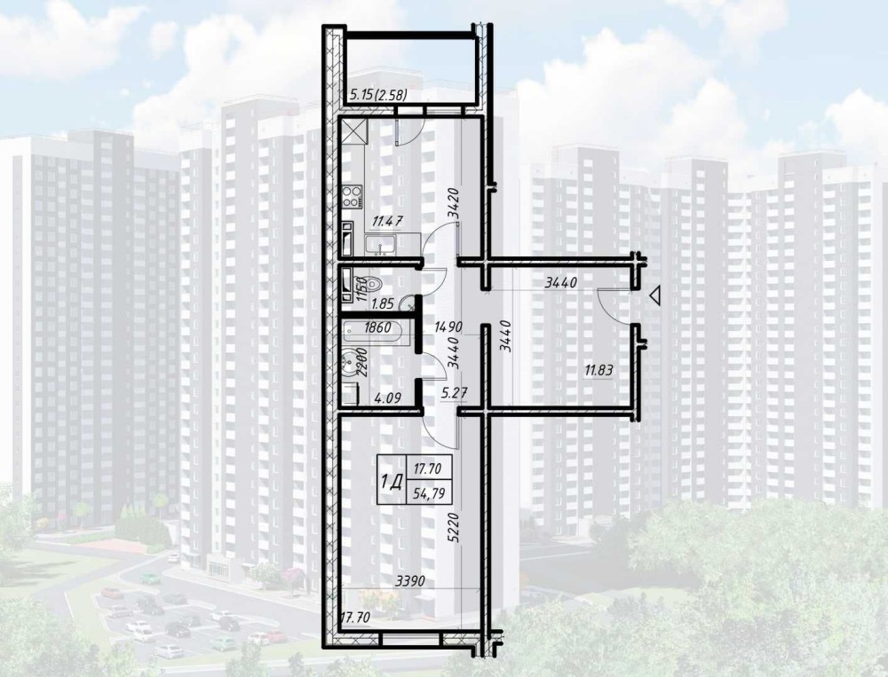 • Общая площадь 54.79 м2