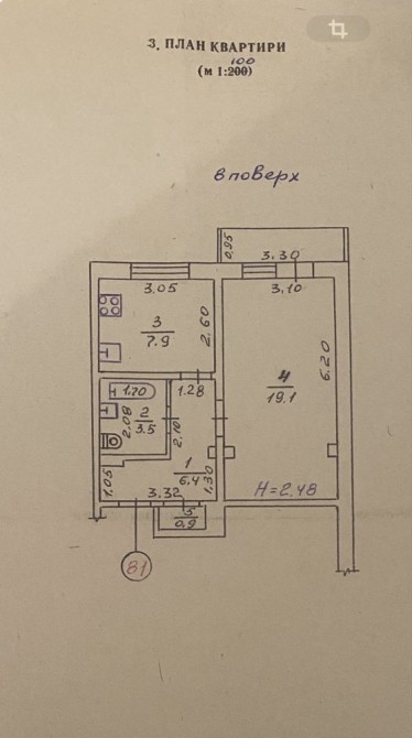 Характеристика приміщення: висота стелі, м: 2.5 • загальна площа 40 кв метрів. Ванна та туалет обʼєднані.