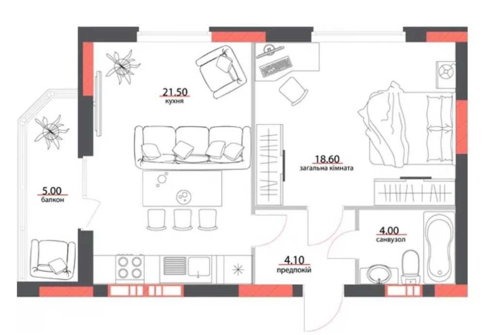 Загальна площа — 53 м²