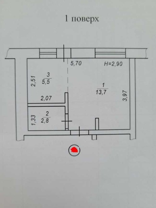 Квартира знаходиться на першому поверсі і має площу 22 м2.
