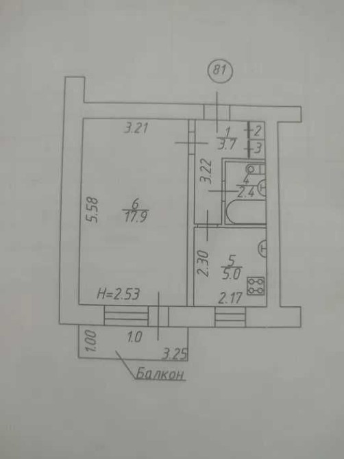 • Площадь кухни 5 м2