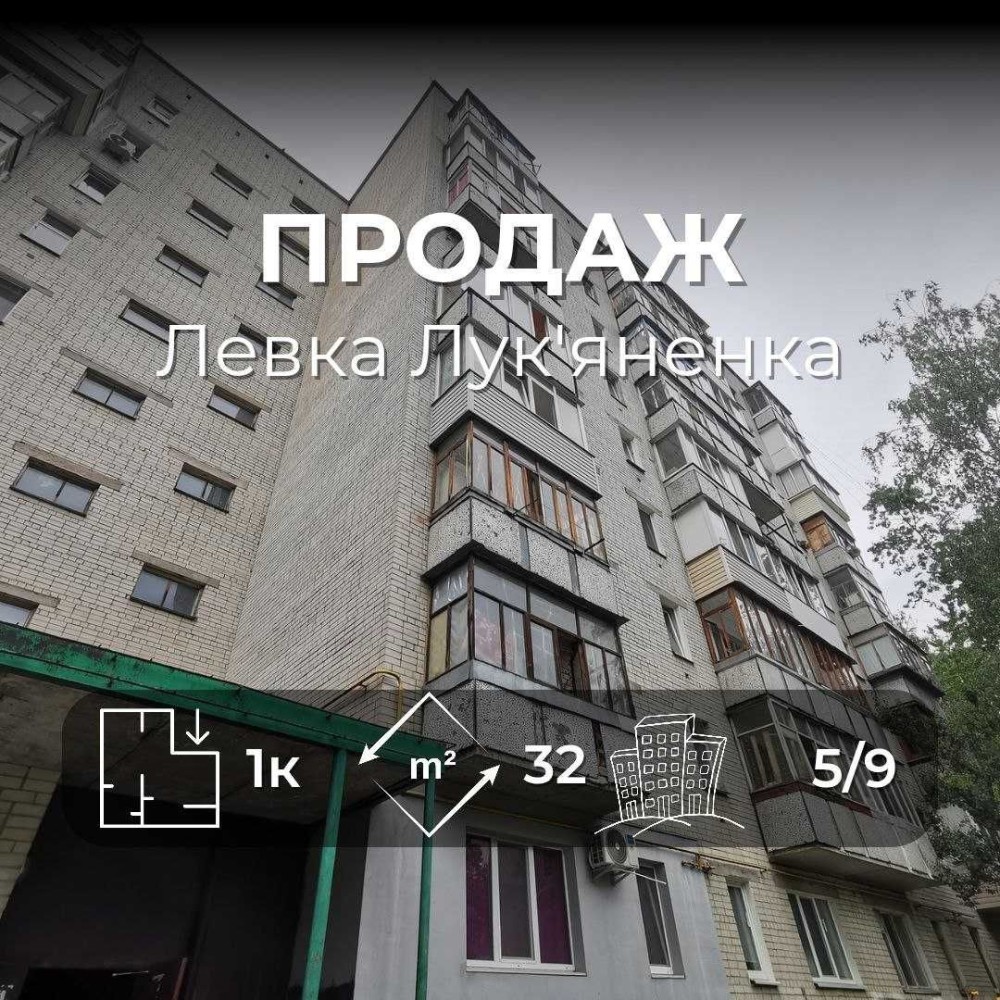 Пропонується до продажу 1-кімнатна квартира загальною площею 32 м² на зручному 5 поверсі 9-поверхового цегляного будинку.
