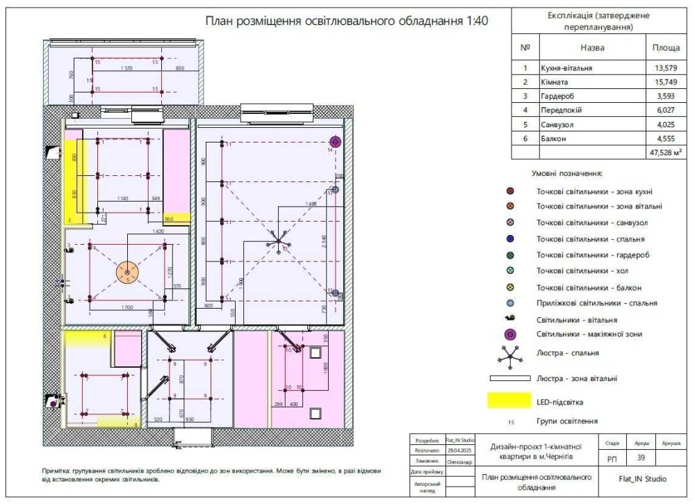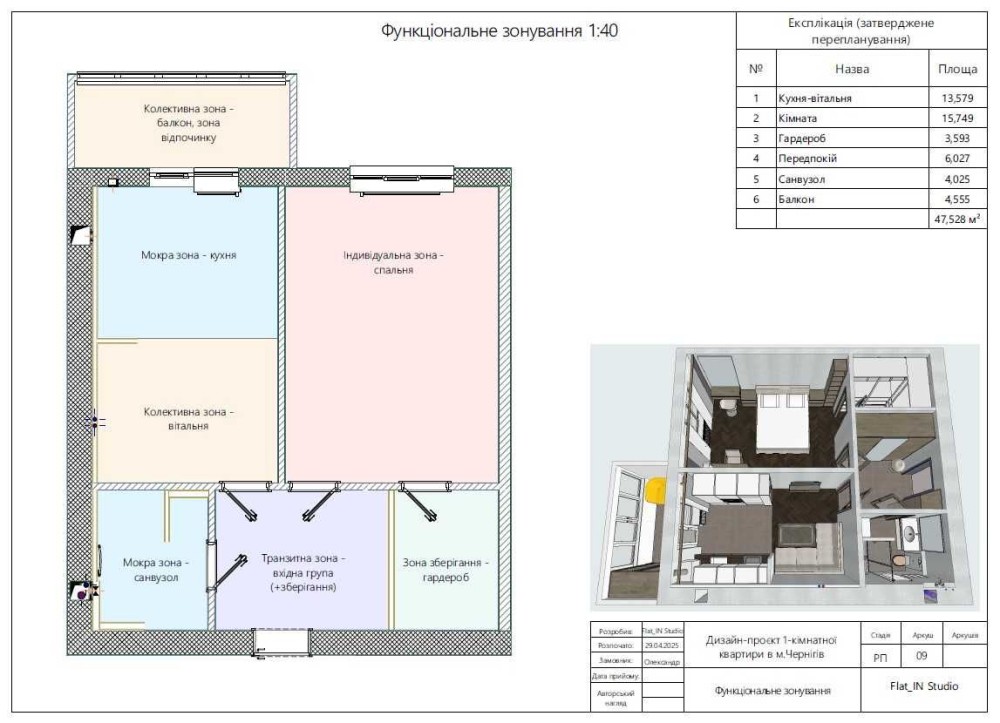 Дизайн-проєкт розроблено з метою максимально корисного використання кожного квадратного метру, що зробить квартиру комфортною як для особистого проживання, так і вигідно вирізнятиме її на ринку оренди (оскільки більшість однокімнатних квартир в Чернігові, що пропонуються в оренду, мають однотипне планування та меблювання).