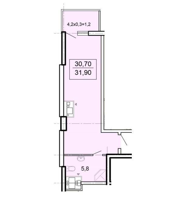 • Общая площадь 30 м2