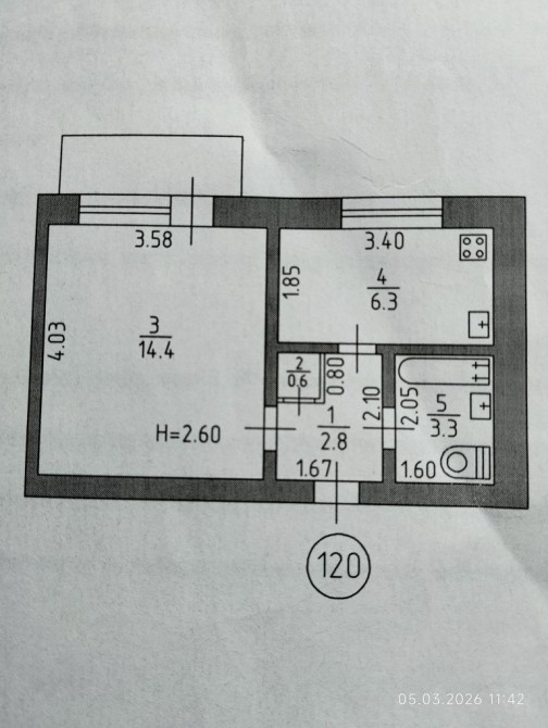 • Площадь кухни 6.3 м2
