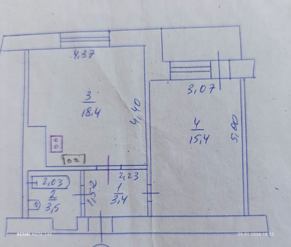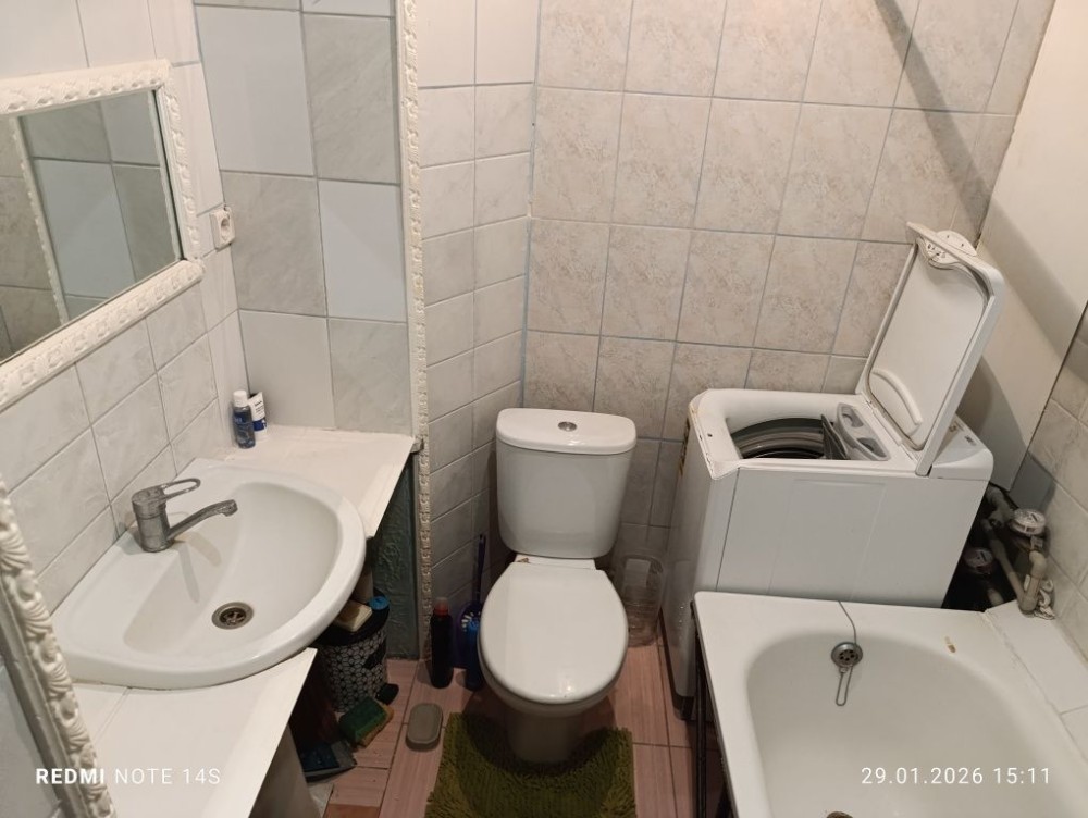 Встановленні лічильники на гарячу і холодну воду. Будинок розміщений торцем до проїжджої дороги.Зелений двір.