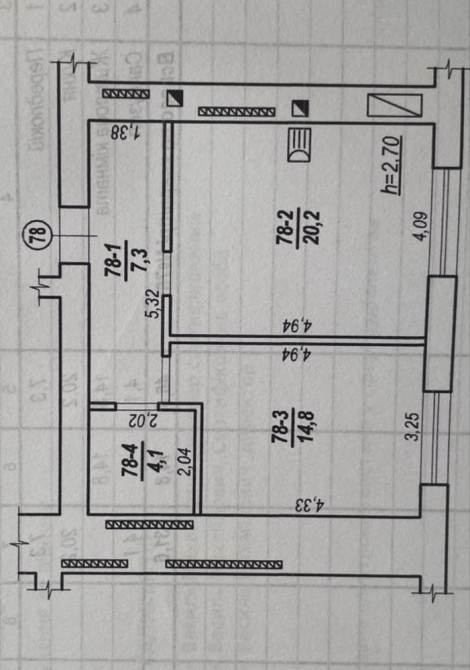 Площа загальна 46.4 кв.м, не кутова.