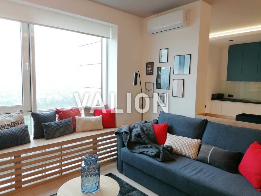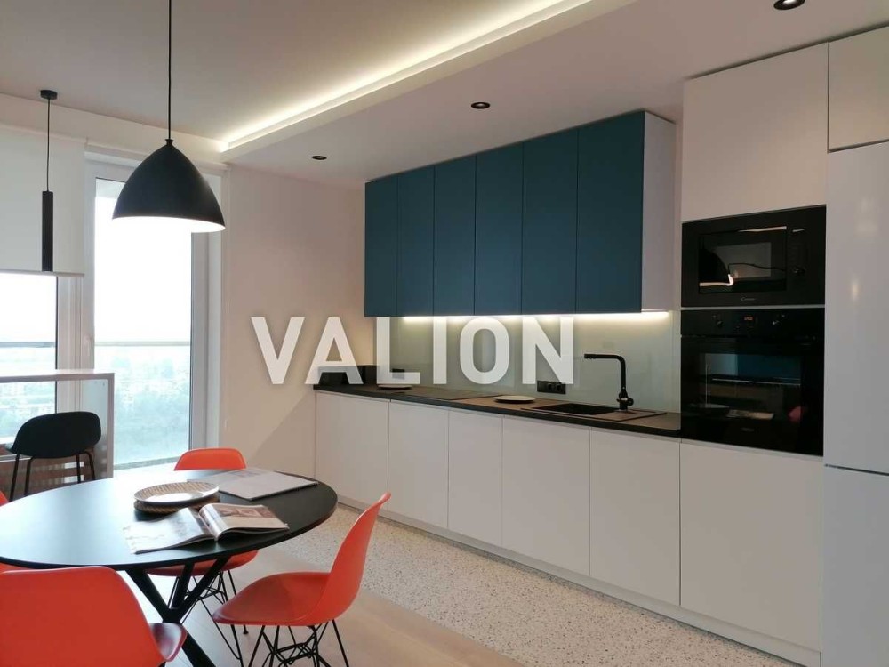 Розташована на 20 поверсі 25-ти поверхового будинка. Загальна площа 50м2, житлова 10м2, кухня-вітальня 25м2, балкон 5м2.