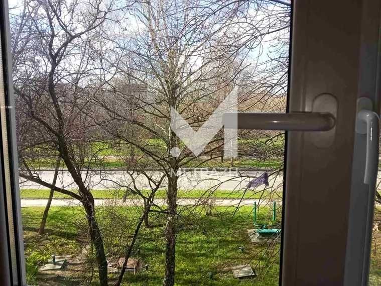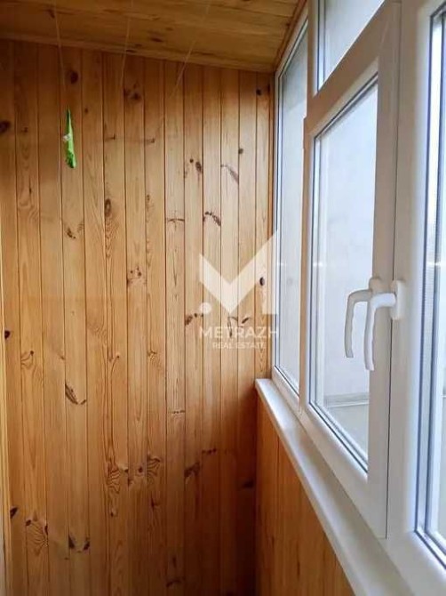 Балкон застеклен и обшит деревом, отличный вид на зеленый двор