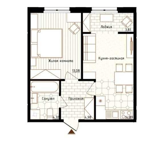 • Общая площадь 41 м2
