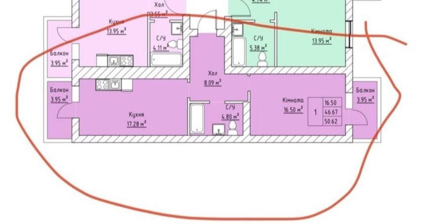 Продам 1к квартиру 50м2.БЕЗ КОМІСІЇ.Зданий будинок.Жк Київський Маєток
