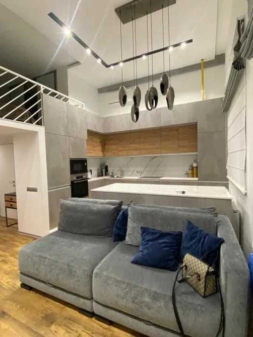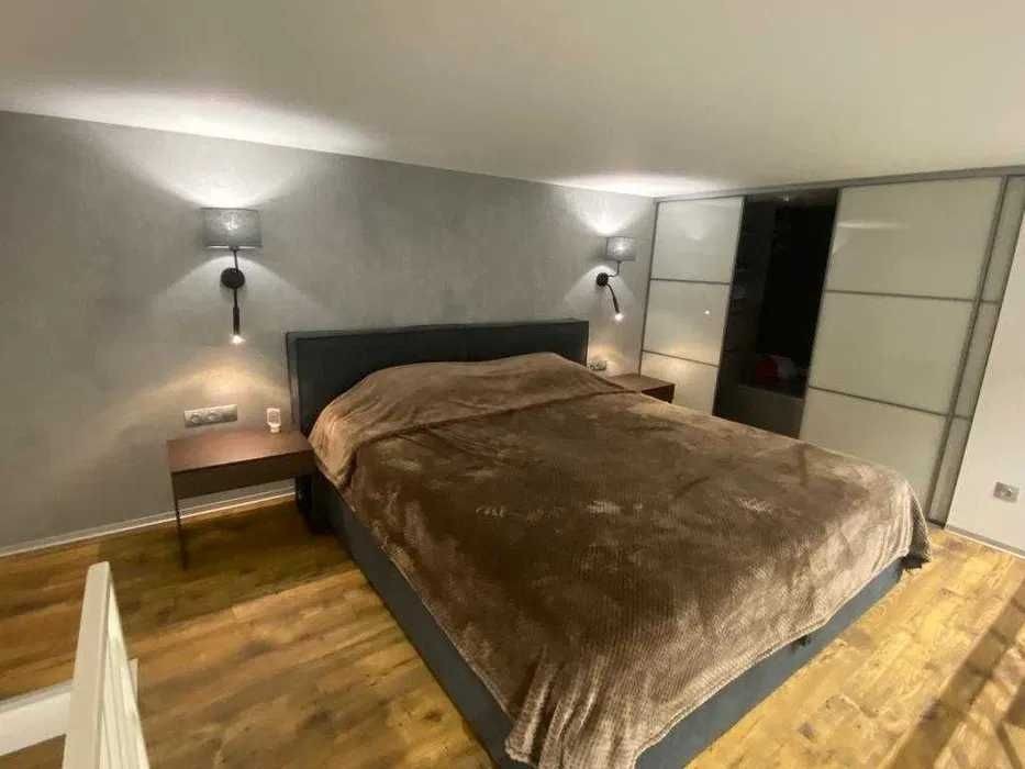 Квартира дворівнева розташована на 4му поверсі 4х поверхового будинку. Загальна площа 55м2. Висота приміщення 5м. Формат квартири: простора кухня-вітальня, сумісний с/в, гардеробна, на другому поверсі спальне місце. В квартирі зроблений ремонт за дізайн-проектом з дорогих матеріалів. Проживали всього пів року, тому все в ідеальному стані.