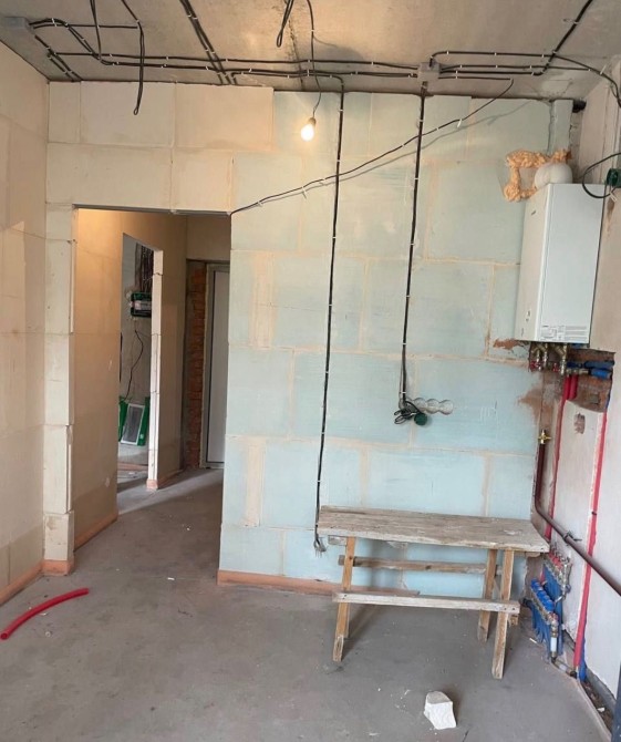 В квартирі вже зроблені ремонтні роботи – прокладена тепла підлога по всій площі квартири, розведена електрика, зроблена чистова штукатурка.