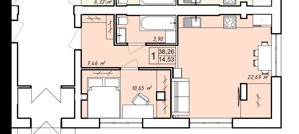 • Общая площадь 46 м2