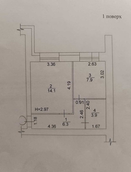 • Общая площадь 33 м2