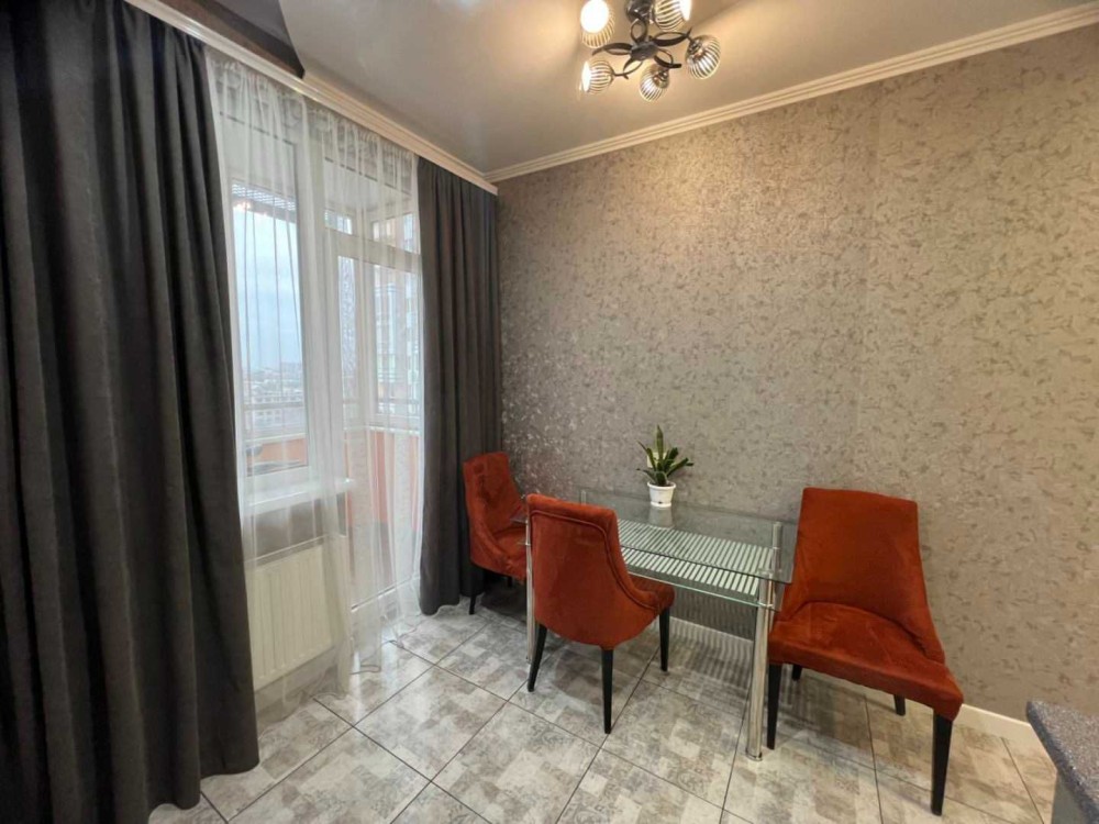 Стильна красива квартира в Одесі на Середньофонтанській ЖК Апельсин від СК Будова Відмінна локація комплексу, близькість центру, довкола добре розвинена інфраструктура. Охоронювана, впорядкована територія комплексу з цілодобовим відеоспостереженням. Достойна вхідна група, консьєрж, квіти, кавоварка Квартира розташована на 15-му поверсі 24-х поверхового будинку із загальною площею 40кв.м Розпланована квартира у велику світлу кімнату, де встановлена ​​дуже містка шафа-купе, на стіні телевізор та консоль. Затишна кухня з виходом на засклену простору лоджію, кухня обладнана красивими функціональними кухонними меблями та всією необхідною технікою, є кухонний стіл та зручні крісла. Просторий суміжний санвузол з ванною та красивим підсвічуванням І місткий коридор У квартирі виконано якісний сучасний ремонт Квартира вільна та готова до заселення нових господарів ТЕЛЕФОНУЙТЕ! Є відеоогляд квартири