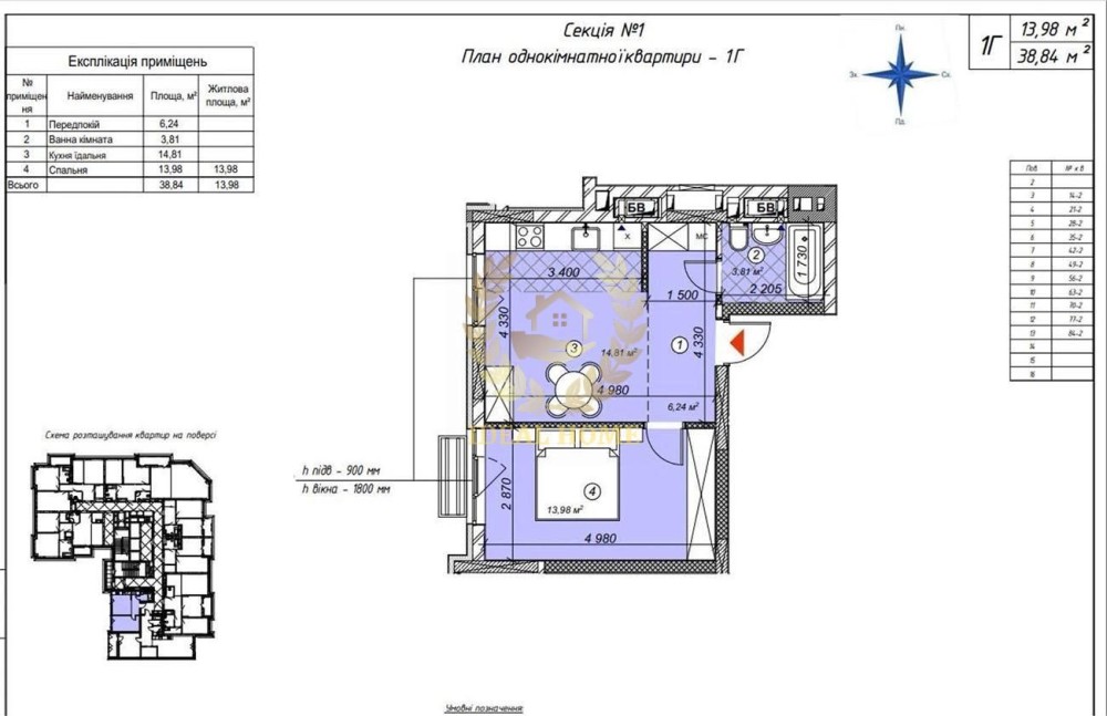 • Общая площадь 39 м2