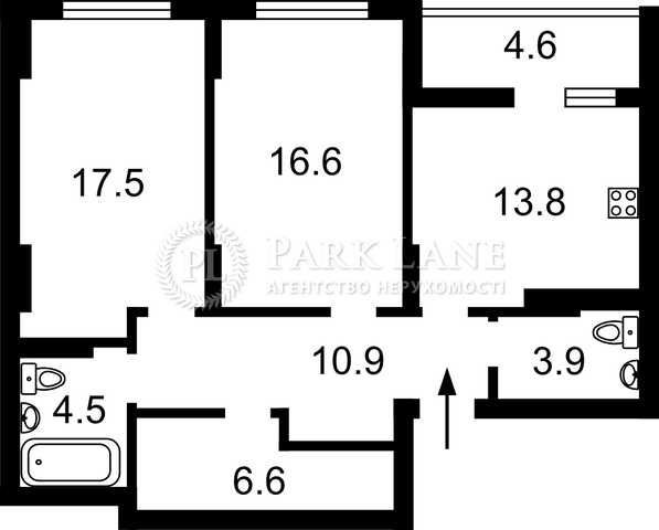 • Трехкомнатная