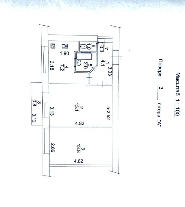 • Общая площадь 44.3 м2