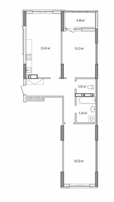 • Площадь кухни 23.43 м2