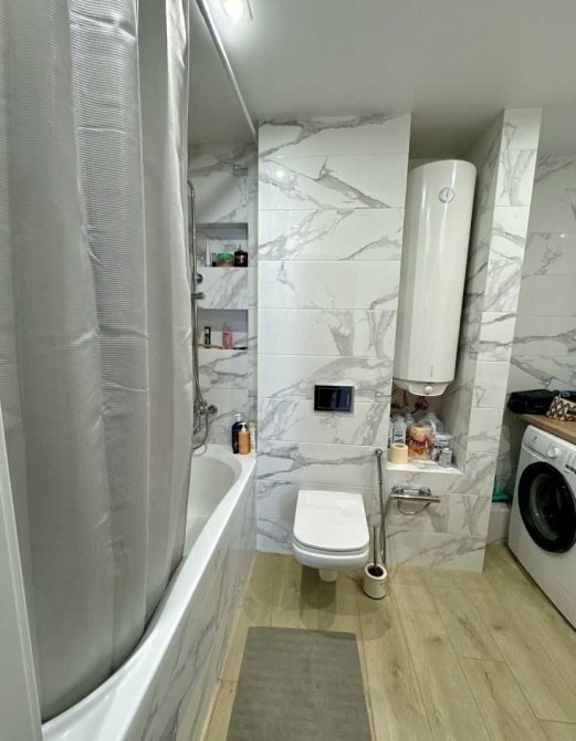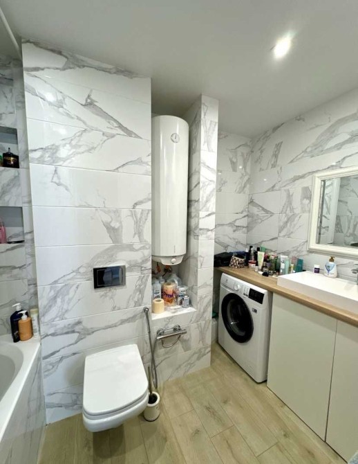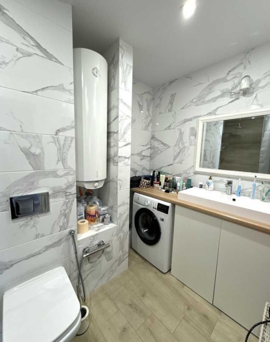 В комнатах и кухне установлены кондиционеры, есть бойлер, посудомойка, стиральная машинка, ТВ, теплые полы в прихожей и с/у. Дом утеплен , поэтому квартира очень теплая.