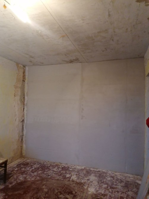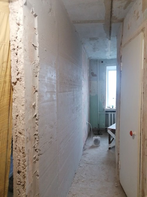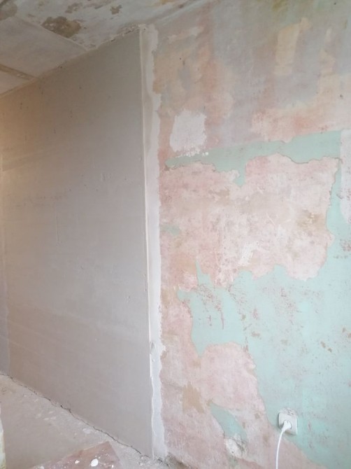 Квартира без ремонту, але вже виконана деяка робота: частково зроблена стяжка стін, частково демонтовано стару дерев’яну підлогу. (В одній кімнаті ще лишилася стара підлога)