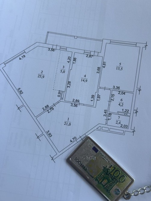 Кімнати — 14,7 м² та 15,5м²