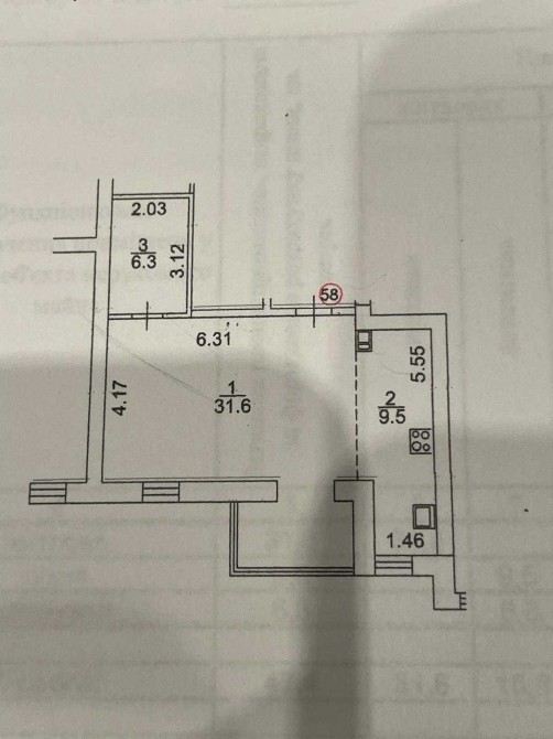 • Площадь кухни 9.5 м2