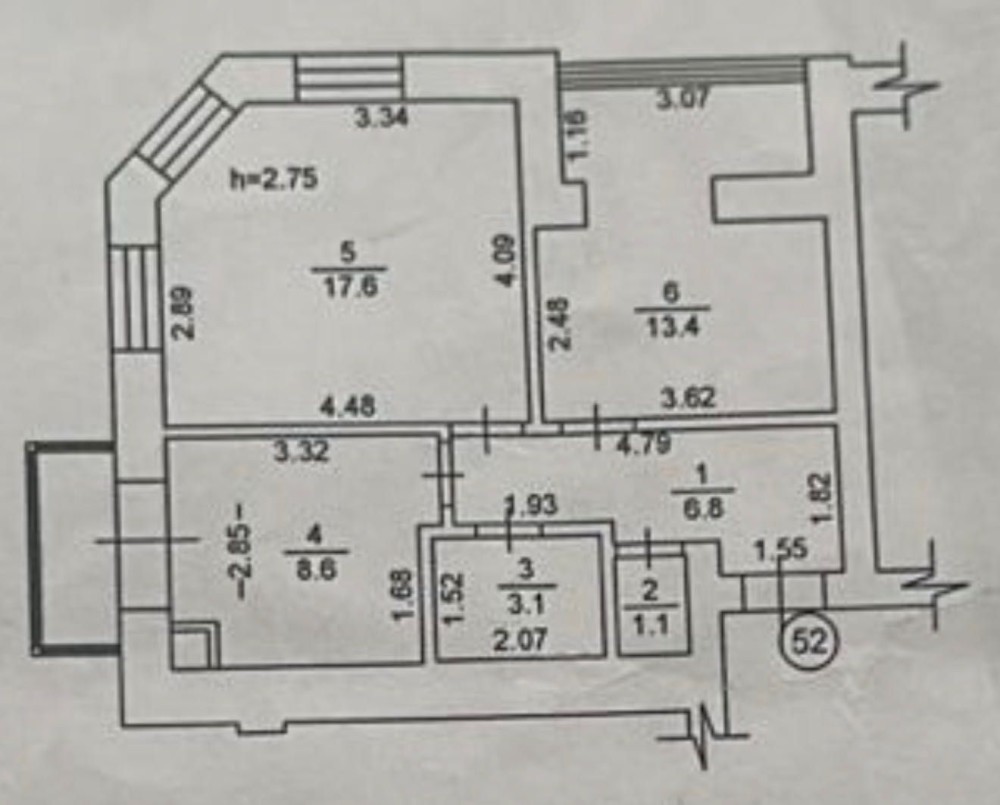 • Общая площадь 52.4 м2
