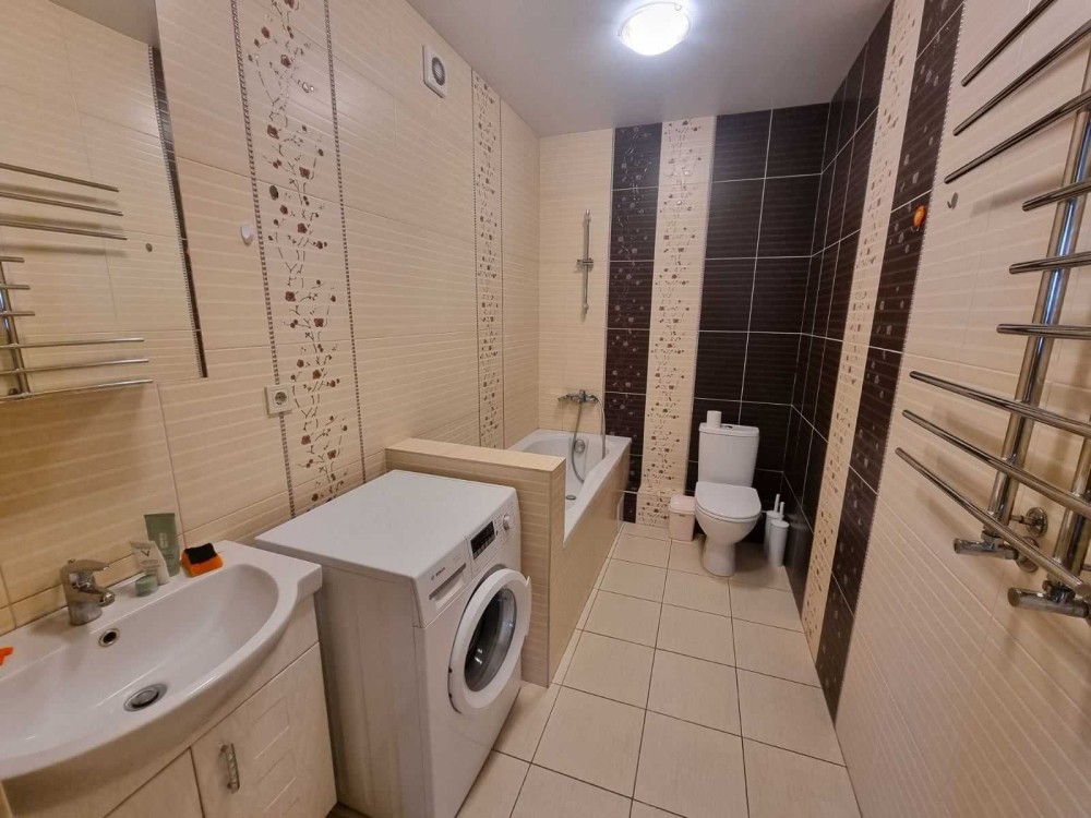установлены 2 бойлера,кондиционеры.С/у совмещенный,с ванной и стиральной машиной.