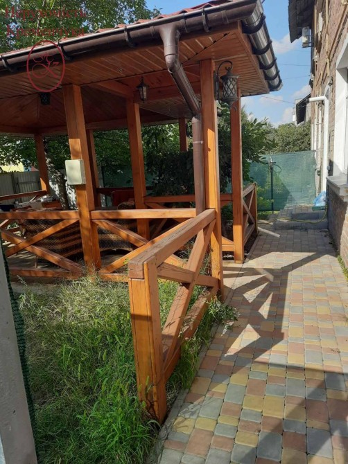 Є окремий вихід на інший бік будинку де огорожений майданчик під плиткою. На майданчику знаходиться дерев'яна альтанка.