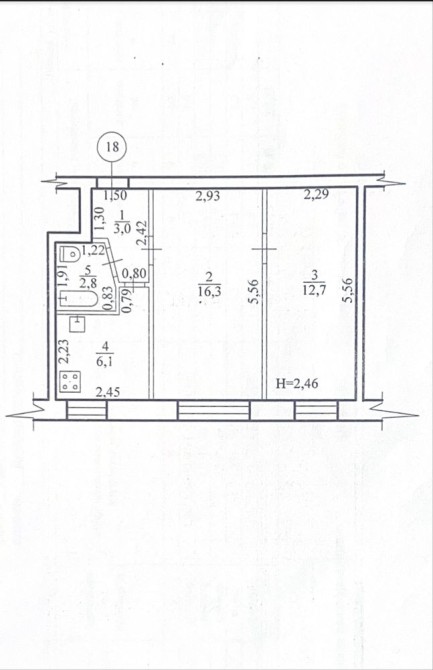 • Площадь кухни 6.1 м2