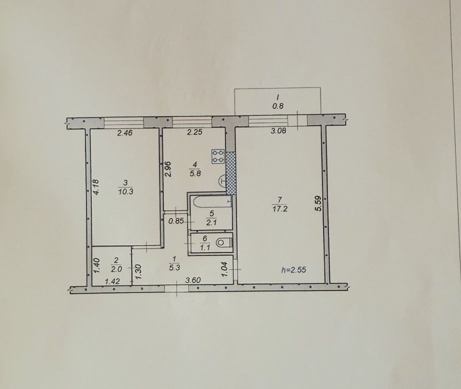 • Площадь кухни 7 м2