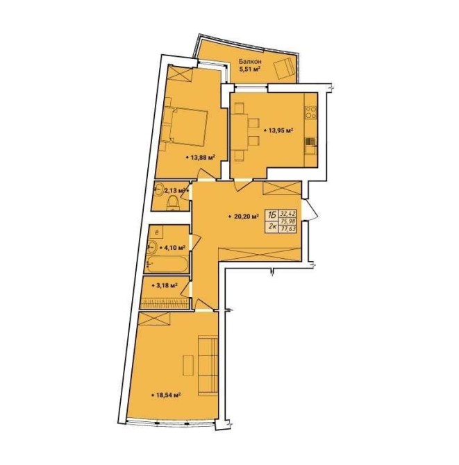 • Общая площадь 77.64 м2